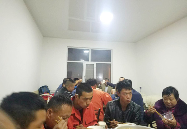 (张董与项目部工人共进晚餐)