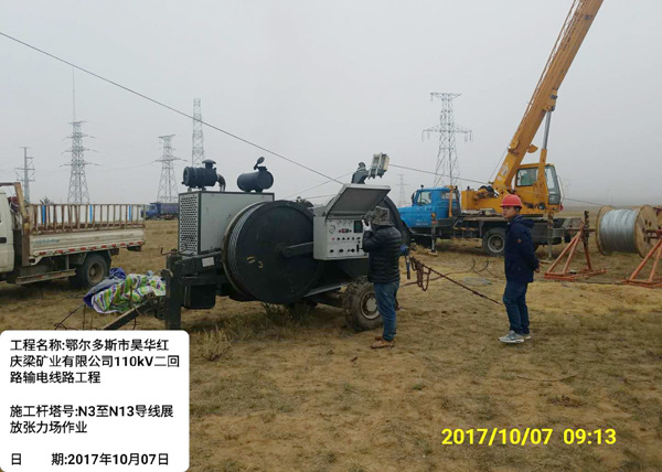 (施工杆塔号:N3-N13导线展放张力场作业)