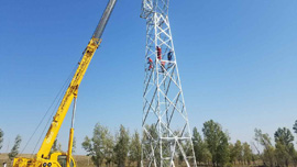 工程名称:鄂尔多斯市昊华红庆梁矿业有限公司110KV二回路输电线路工程 施工杆塔号:N46铁塔组立 施工日期:2017年0...