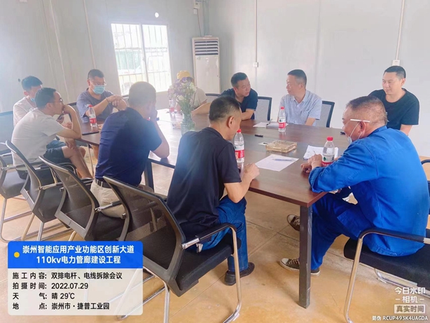 工程名称:崇州智能应用产业功能区创新大道110kv电力管廊建设工程 施工内容:双排电杆、电线拆除会议 时间:2022年07月29日...