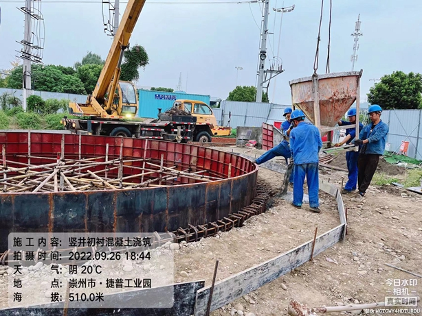 工程名称:崇州捷普隧道项目 施工内容:竖井初村混凝土浇筑 时间:2022年09月26日